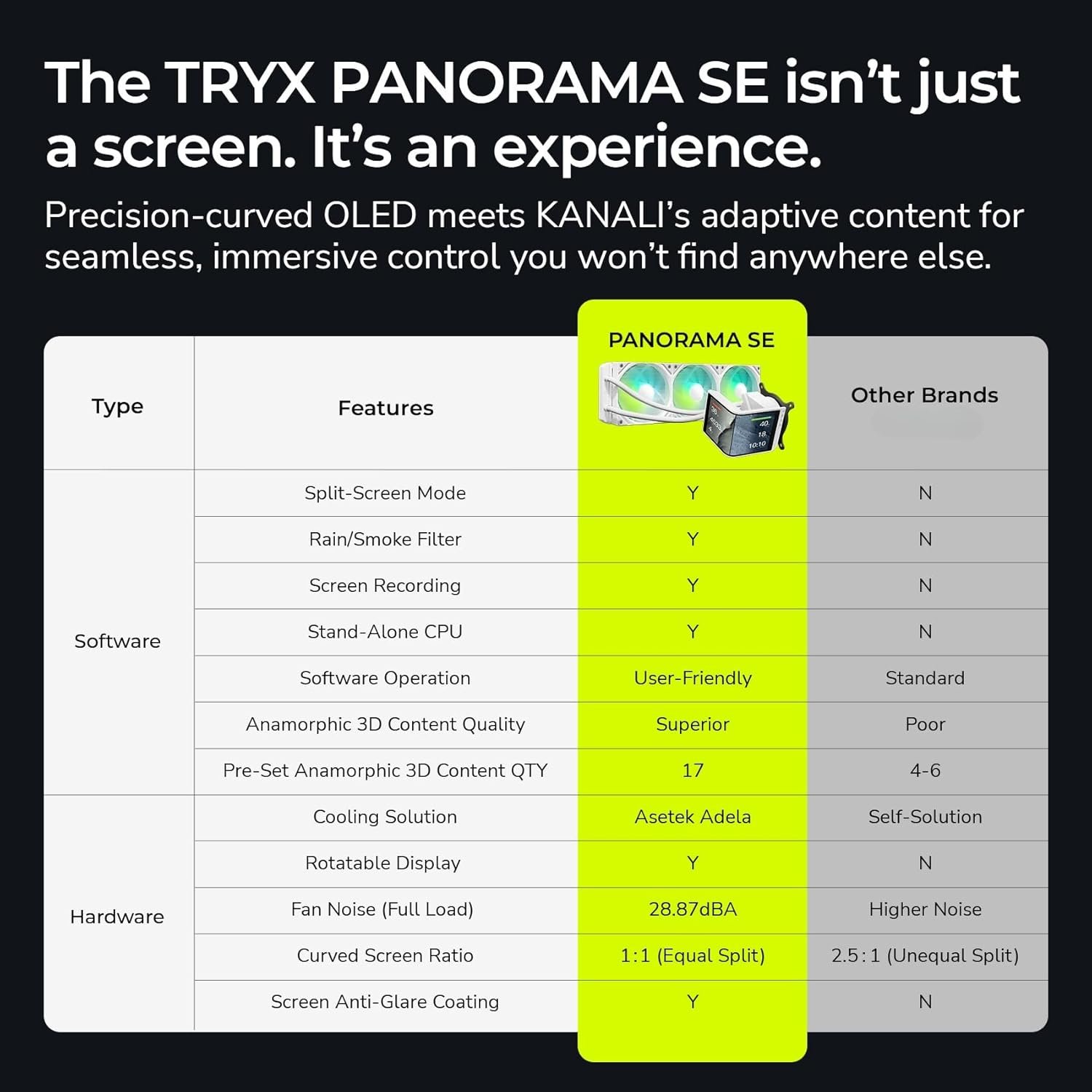 ULTIMATE CUSTOMIZATION: Utilize the TRYX KANALI software to customize your PANORAMA SE 360 ARGB WHITE AIO cooler display with Instant Screen Content Switching. Split-Screen Display Capability and System Info. while using near-zero system resources for the ultimate customization experience. Users can upload and adjust their own media to display including PNG/JPG/GIF/MP4/AVI 1080P, 500M maximum, which sparks creativity and provides various ways to showcase the best visual effect with boundless imagination. Please upgrade KANALI software to the latest version for full content experience